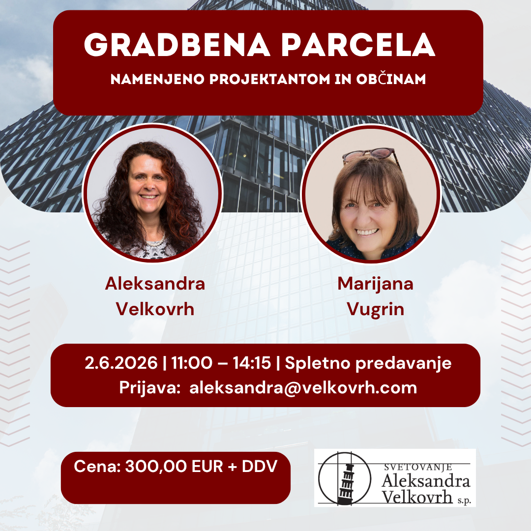 - Gradbena zakonodaja za investitorje, projektante, nadzornike in izvajalce s predstavitvijo pomembnih predvidenih sprememb GZ-1